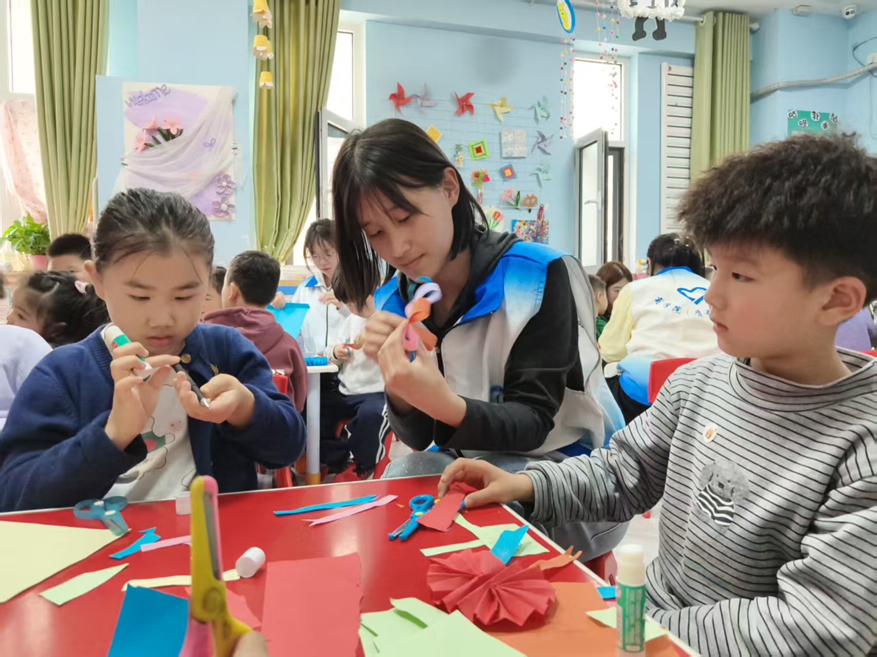 活动围绕“大手拉小手”核心理念,通过讲述雷锋故事、播放主题动画的形式,将雷锋精神具象化、通俗化,引导孩子们直观理解助人为乐的精神内涵。在此基础上,志愿者耐心指导小朋友们开展手工制作,使用彩纸、剪刀等材料制作雷锋勋章,让小朋友们在动手实践的过程中,进一步体会雷锋精神的内涵。趣味问答环节,志愿者积极与小朋友们互动,在轻松氛围中进一步传递雷锋精神,深化幼年儿童对雷锋精神的认知,同时提升幼年儿童参与志愿活动的积极性与表达能力。