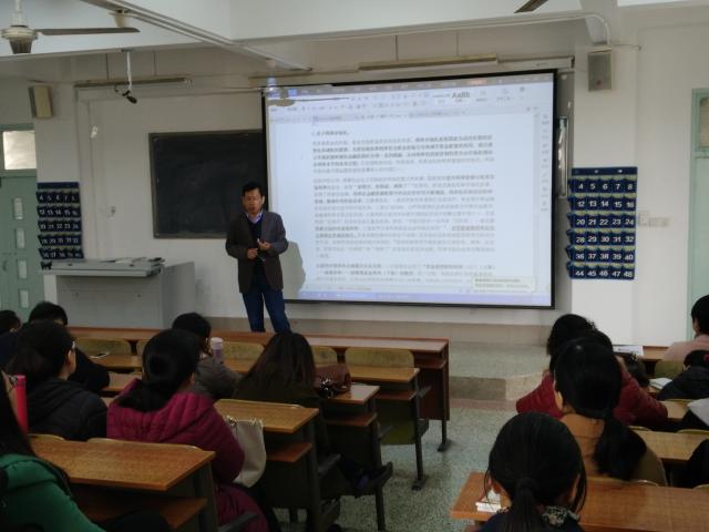 宋书记用“为什么学?学什么?怎么学?怎么做?”四个问题开篇,将习近平新时代中国特色社会主义思想具体化,宋书记结合自身经历、聊城当地文化,为同学们穿插讲解了五位一体的整体布局、四个全面战略布局以及“四个自信”等,并对“四个自信”中的文化自信进行了详细的讲解。宋书记提到:“文化自信为中华民族伟大复兴的中国梦凝聚强大的向心力,赋予中华民族面向世界、面向未来的从容姿态,文化自信是对“中国特色”的最好诠释,希望同学们坚定文化自信,凝聚正能量”。最后,他表示,大家一定要加强学习,深刻领会十九大精神的实质,严明律己,时刻牢记自己的责任,认真履行新党章的要求,为学院学校建设贡献自己的力量。