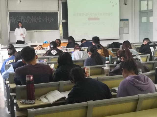 为深入学习习近平新时代中国特色社会主义思想,10月20日,商学院于1号教学楼302教室举办“党校培训班”活动。本次活动由商学院刘宏宇同学做汇报人,全院入党积极分子参与。