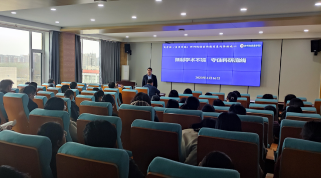 梁树广副院长首先介绍了加强科研诚信教育的背景及其重要意义,然后解读了科研诚信政策与相关文件,包括《科研失信行为调查处理规则》《学位论文作假行为处理办法》《高等学校预防与处理学术不端行为办法》等,对近几年出现的科研失信的典型案例进行了分析,最后就发表学术论文、申请科研项目、科研经费的使用等需要注意的问题进行了详细说明。