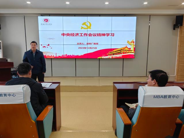 为深入学习贯彻中央经济工作会议精神,12月25日,商学院(质量学院)在东校区1#707报告厅举办专题学习会。会议由学院党委委员、副院长梁树广主讲,学院党委书记公维才主持。