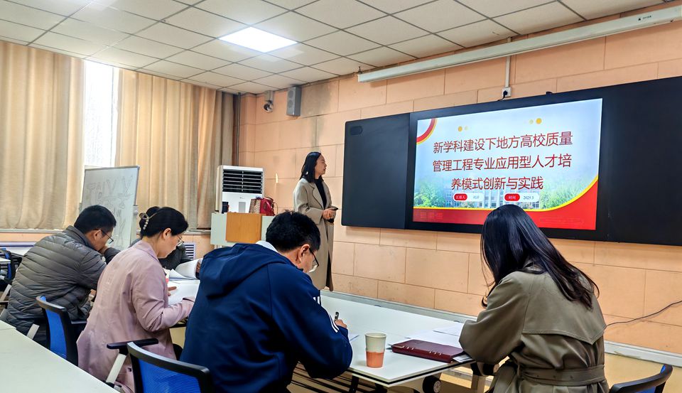 刘洋博士围绕《新学科建设下地方高校质量管理工程专业应用型人才培养模式创新与实践》,就质量管理工程专业的产教融合破局、六维一体培养体系、实践资源整合和动态评价机制进行汇报。