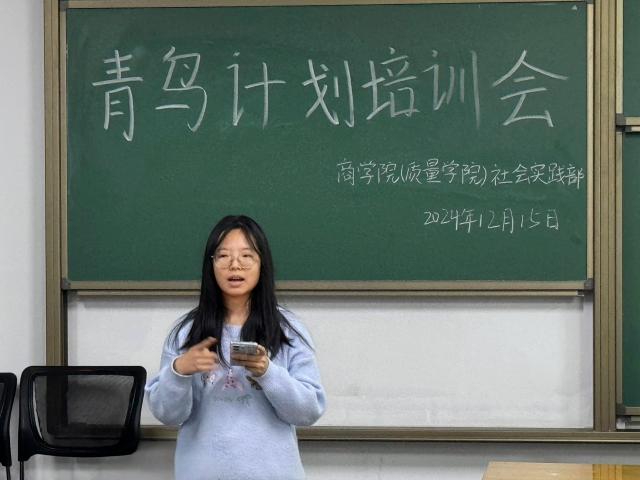 为引导学生在服务家乡的社会实践中受教育、长才干、作贡献,12月15日,商学院(质量学院)在314室组织开展“青鸟计划”寒假大学生“返家乡”社会实践动员会,学院学生会社会实践部甄佳慧、李顺担任主讲人,2023级、2024级本科生及研究生各班班团参会。