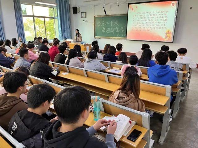 奋进新时代,争做新青年。为学习党的二十大精神,强化党史学习教育,加强学院学生思想政治教育,根植爱党爱国情怀,10月23日,商学院于东校区1#305举办“永远跟党走 奋进新征程”活动。