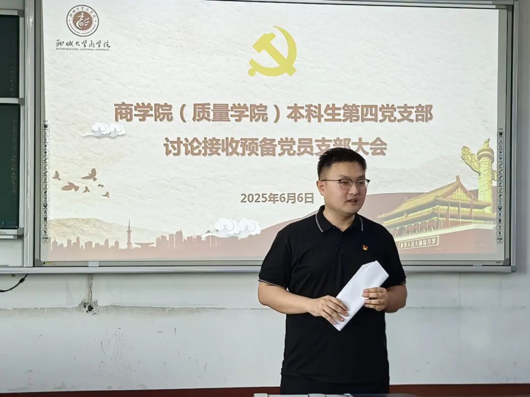 6月6日,商学院(质量学院)本科生、研究生党支部于东校区1号教学楼召开讨论接收预备党员支部大会,会议分别由各党支部书记主持,支部全体党员和拟接收预备党员参加。