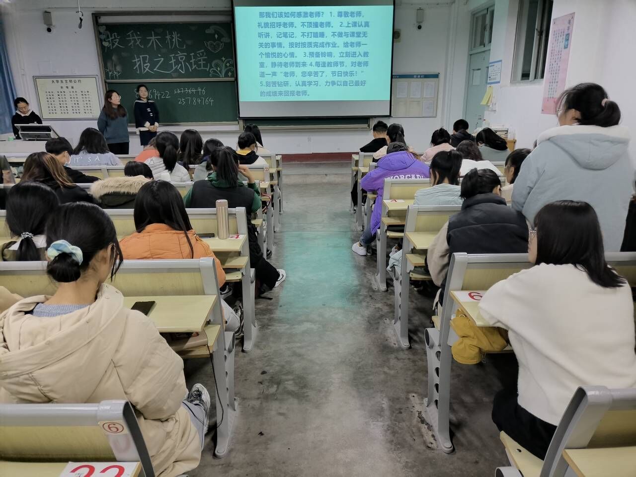 感恩自古以来就是中华民族的优良传统,是世世代代中国人的道德准则。为了培养同学们的感恩之情,继承和发扬中华民族优秀的传统美德,培养新时代懂得感恩的有志青年。商学院于11月29日在东校区1#301开展“投我木桃 报之琼瑶”主题班会。