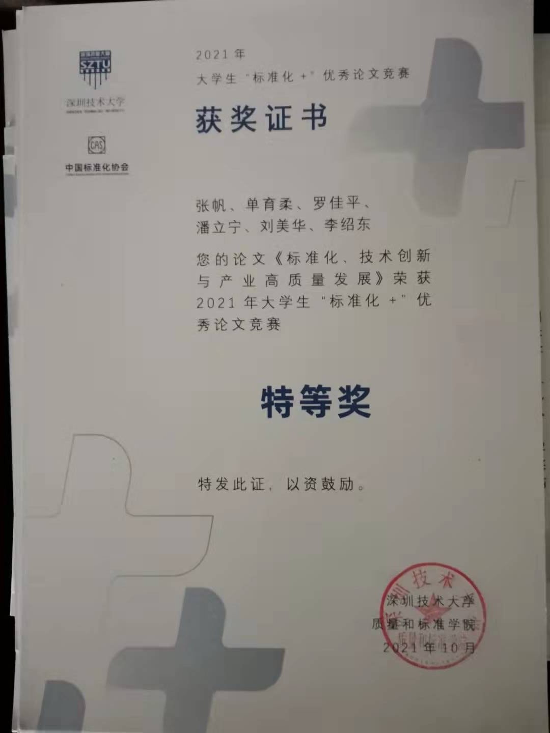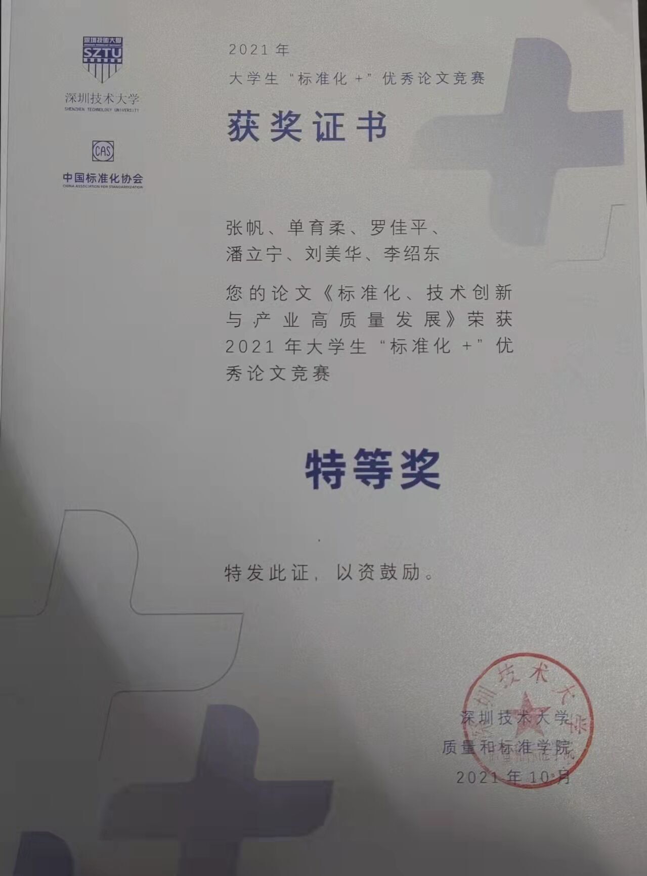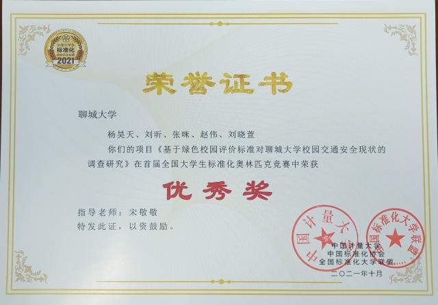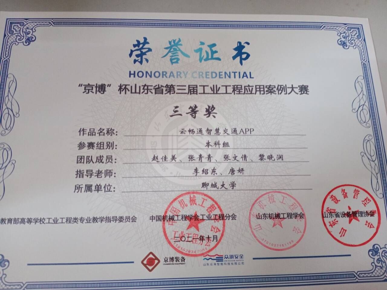 罗佳平在2021年大学生“标准化+”优秀论文竞赛中荣获特等奖,郭阳阳在2021年iCAN全国大学生创新创业大赛的山东省赛区选拔赛中获得二等奖, 同时,该同学在第十三届山东省大学生科技节——“有人杯”第八届山东省物联网创造力大赛中获得二等奖,并在第六届“创客中国”山东省中小企业创新创业大赛中取得创客组三等奖的好成绩。刘美华在2021年大学生“标准化+”优秀论文竞赛中获得特等奖,刘昕在首届全国大学生标准化奥林匹克竞赛中获得优秀奖,张咪在首届全国大学生标准化奥林匹克竞赛中取得优秀奖,张青青也在“京博”杯山东省第三届工业工程应用案例大赛中获得三等奖。特此,对以上获奖同学予以祝贺表彰。