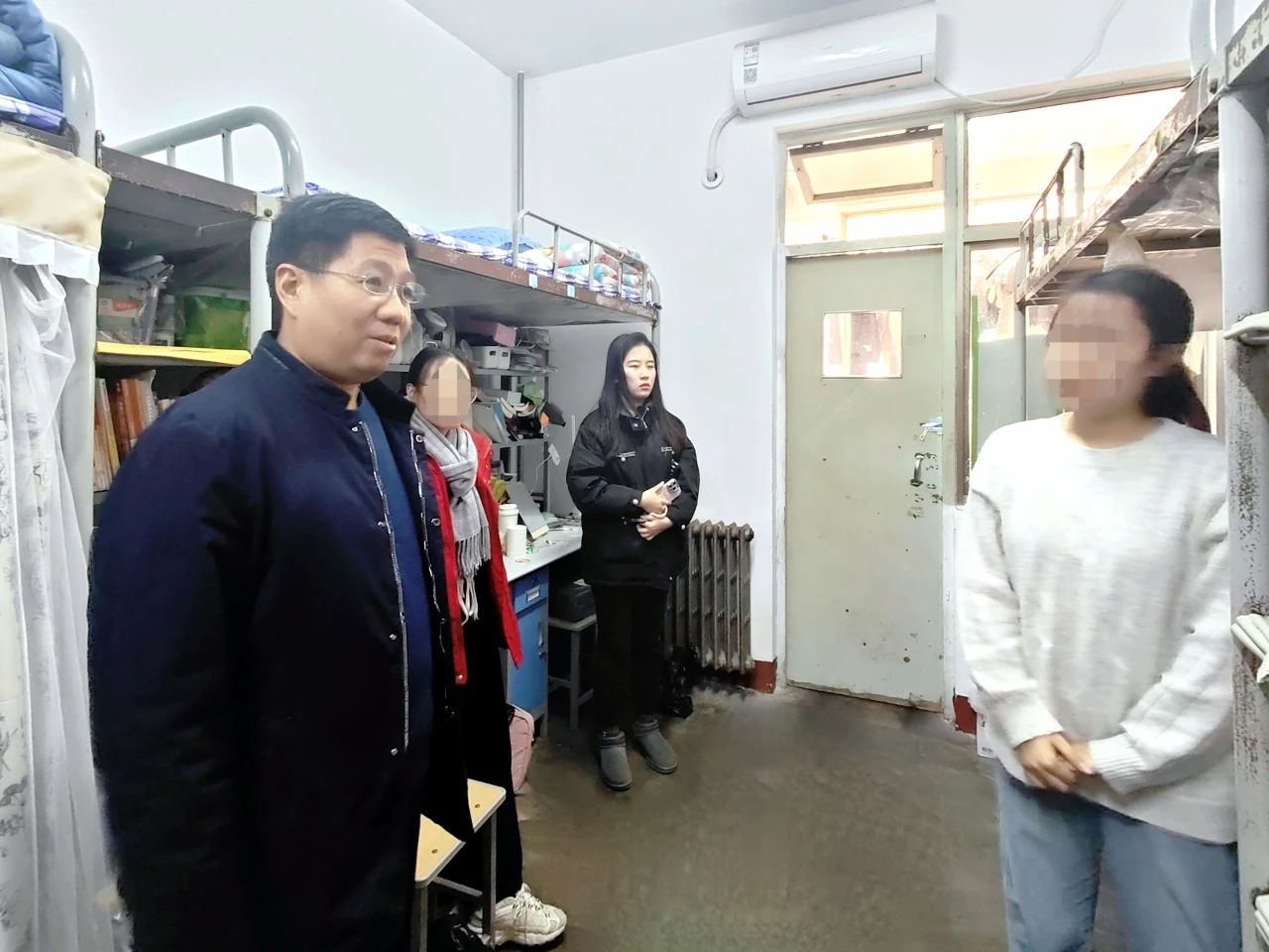 为深化资助育人成效,传递学院关怀,12月5日,商学院(质量学院)团委书记刘玉华,辅导员高鹏、韩亭亭、刘聪睿前往群星公寓22号楼,对家庭经济困难学生宿舍进行走访。