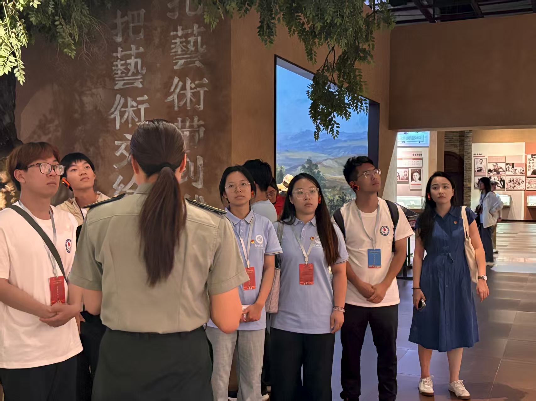 带着从梁家河汲取的深厚群众情怀,实践队于当日下午开启了追寻“文艺为人民”方向的溯源之旅。走进延安文艺纪念馆,实践队开展了一场别开生面的红色文化探寻之旅。延安文艺纪念馆,承载着中国革命文艺的辉煌记忆,是中国共产党领导下文艺发展的重要见证地。馆内丰富的文物、详实的史料,生动展现了延安时期文艺工作者以笔为枪、为人民而歌的伟大精神。