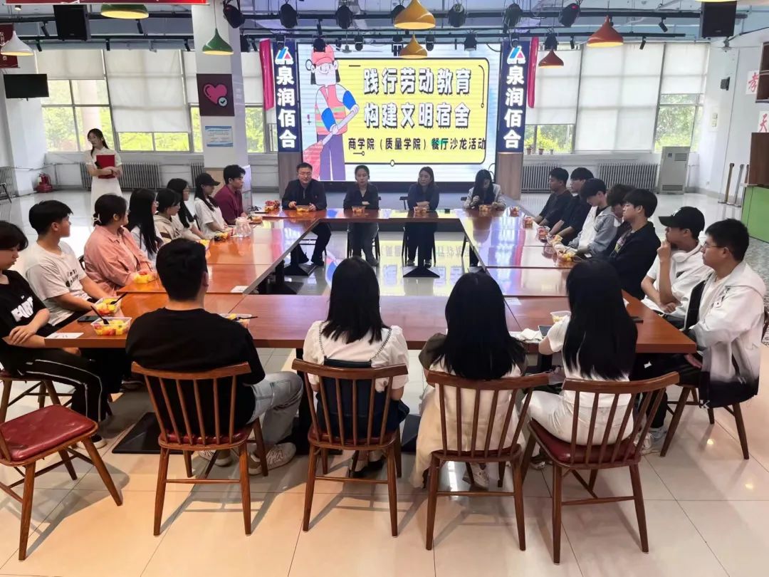 为进一步加强学生的自我安全意识,培养学生良好的生活习惯,提高内务管理能力,增强同学们的动手能力,提升自身劳动素养,5月11日,商学院(质量学院)于东校区翰苑餐厅举办“践行劳动教育 构建文明宿舍”餐厅沙龙活动。辅导员焦艳芳、巨梦薇、高鹏、韩亭亭及部分舍长们参加了此次活动。