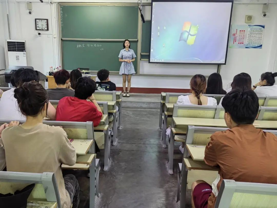 在进行简单的自我介绍后,主讲人从校园经历、荣誉奖励以及未来寄语三个方面进行了细致地讲解。她以自己的成长经历为例,向同学们分享自己在学习、社会实践、校园生活等方面的心得体会。针对大部分大学生往往抱着及格就好的想法现状,主讲人在明确目标上进行了生动详细地讲解,向我们展示了目标的重要性以及一个合适的目标带来的巨大潜能与动力。她提到,在有了明确目标后,最重要的便是行动,在行动中最重要的事情便是持之以恒。最后,张春婷从学习、目标、尝试、心态四个方面给予在座同学宝贵建议,希望学弟学妹端正态度,对学习保持敬畏之心,勇敢尝试自己热爱的事情。