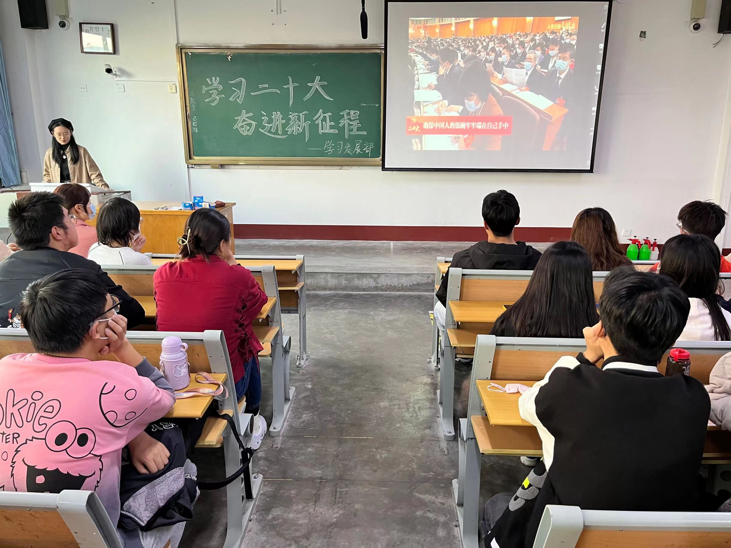 奋进新时代,争做新青年。为学习党的二十大精神,强化党史学习教育,加强学院学生思想政治教育,根植爱党爱国情怀,10月23日,商学院于东校区1#305举办“永远跟党走 奋进新征程”活动。