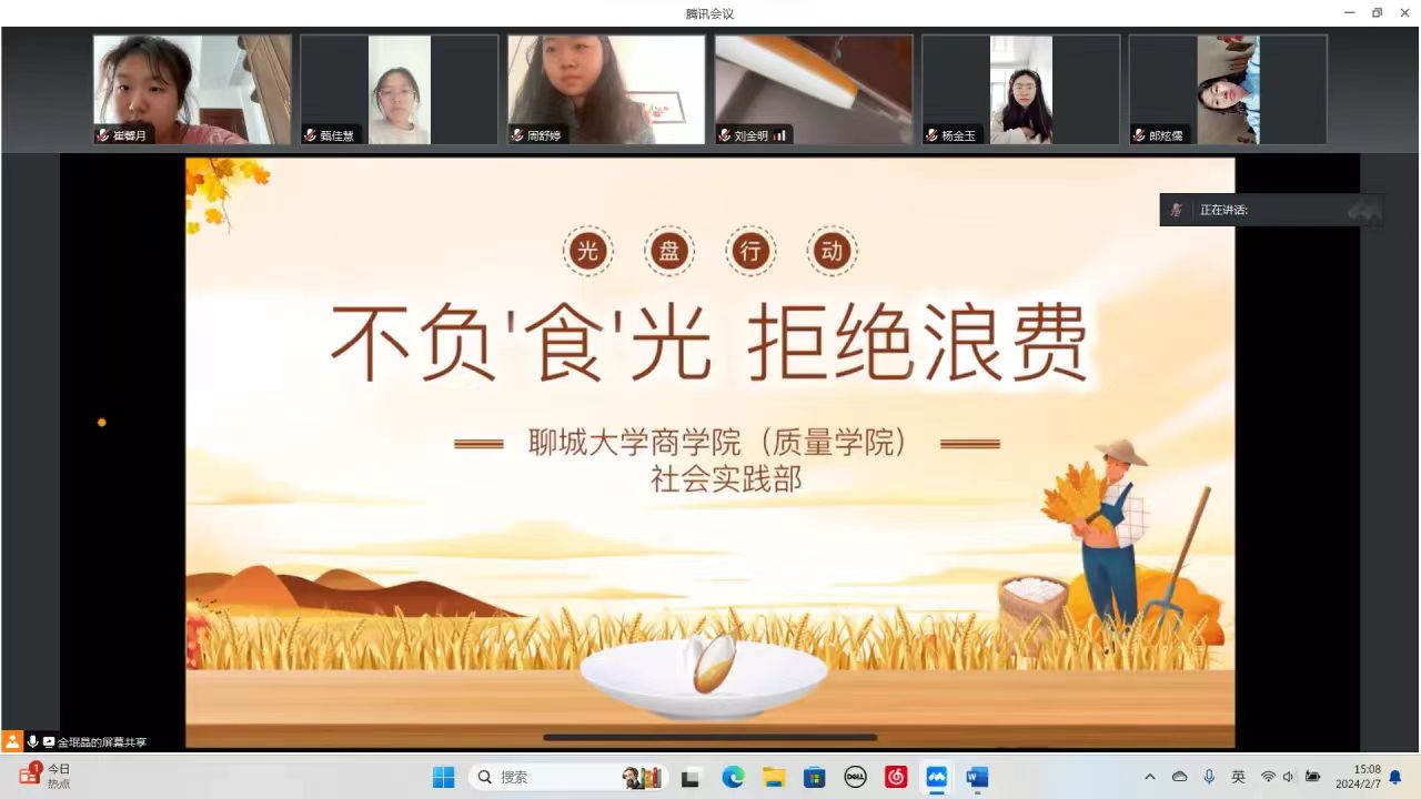 为进一步弘扬中华优秀传统美德,加强团员青年们的思想道德建设,培养广大青年爱惜粮食的优秀品质,2月29日,英国365集团社会实践队开展“不负'食'光 拒绝浪费”线上宣讲活动。
