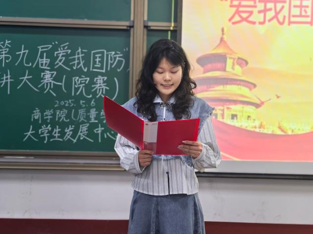 为深入学习贯彻习近平强军思想,增强青年学生的国防意识,5月6日,商学院(质量学院)于东校区1#314举办“爱我国防”主题演讲院赛。学院学生会主席团成员、文体活动部负责人李香凝,挂靠团委二级中心大学生发展中心负责人王佳宇担任评委,学院2023级、2024级共21名同学参加比赛。