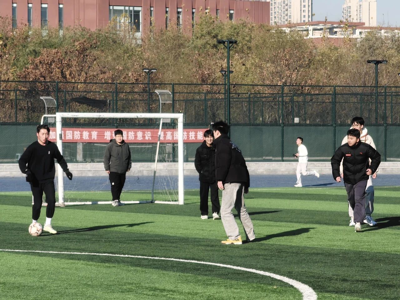 为强化班级凝聚力,活跃校园课余体育氛围,12月8日,商学院(质量学院)秉持“不计分、只踢球、重交流”原则,在东校区田径场开展“会计学杯”足球友谊赛,2023级6班、7班、8班共28名同学参加活动。