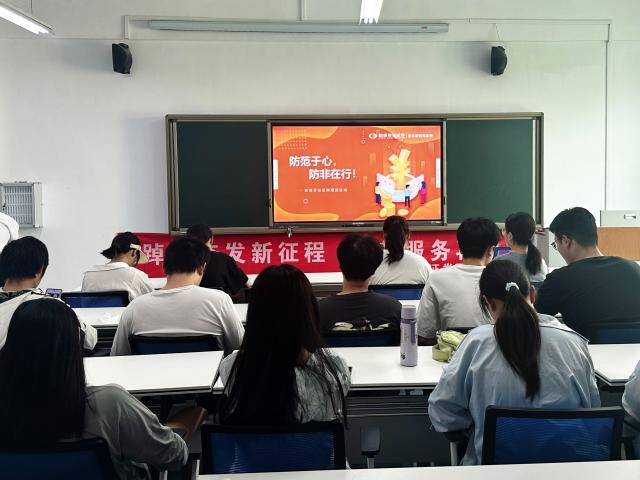 “防范于心,防非在行!”,贾学杰引导学生正确认识证券投资工作,提高警惕,识别防范非法证券期货活动,围绕“如何做好证券投资?”,对当前证券行业的整体态势进行分析,让学生对证券投资领域有了初步认识。他结合《证券研究的2+1思维》,通过对预期思维、边际思维、交易思维等进行讲解,阐述了国泰君安证券研究思想,加深了学生对证券投资知识的积累与掌握。随后,贾学杰介绍了国泰君安的发展历程、业务领域以及发展规划,并分享了工作内容、工作环境等方面的信息,让学生对证券行业有了更加清晰的认识、对职业规划有了更加明确的定位。在互动环节,贾学杰为学生耐心解答疑问,就证券投资行业的求职意向、就业观念等相关问题,提出了个性化的指导和建议。