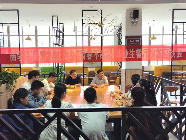 为聆听毕业心语,共话师生情谊,更好地引导毕业生不忘初心、砥砺前行,5月30日,商学院(质量学院)于东校区翰苑餐厅举办“青春不散场”毕业生餐厅沙龙座谈会,团委书记刘玉华、辅导员高鹏以及部分毕业生代表参加了此次活动。