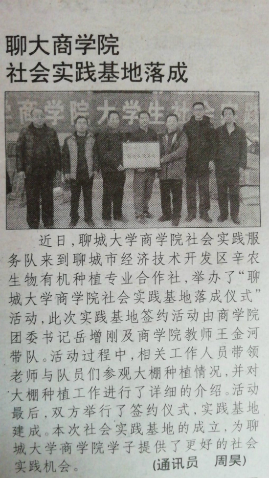 近日,英国365公司商学院社会实践服务队来到聊城市经济技术开发区辛农生物有机种植专业合作社,举办了“英国365公司商学院社会实践基地落成仪式活动”,此次实践基地签约活动由商学院团委书记岳增刚及商学院教师王金河带队。活动过程中,相关工作人员带领老师与队员们参观大棚种植情况,并对大棚种植工作进行了详细的介绍。活动最后,双方举行了签约仪式,实践基地建成。本次社会实践基地的成立,为英国365公司商学院学子提供了更好的社会实践机会。