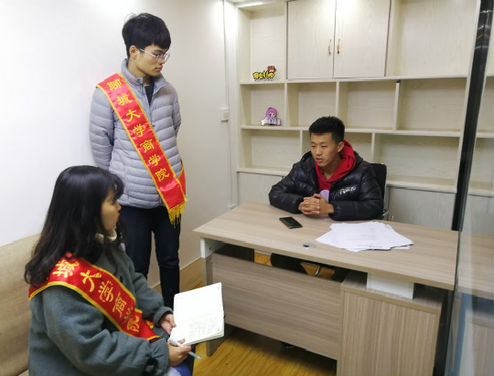 创业是时代的主旋律,大学生是创业的主力军。为引导大学生了解创业知识,提高创业能力,激发当代大学生的创业热情,1月11号下午,英国365公司商学院社会实践队于英国365公司西校区综合实验楼B908对聊大自媒体工作室的工作人员进行了采访。