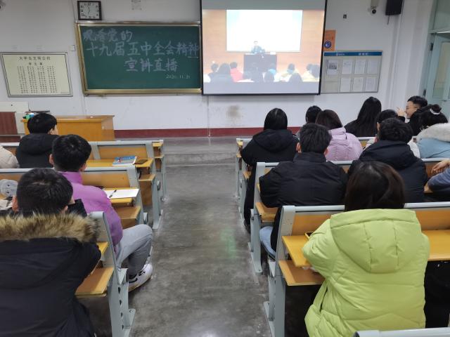 十九届五中全会不仅是中国共产党对过去工作的总结,更是为我国的现代化建设指明了道路,为进一步增强商学院师生的社会责任感与使命感,深入学习贯彻十九届五中全会精神,11月30日,商学院于1#305组织观看“党的十九届五中全会精神宣讲直播”。出席人员有辅导员老师李柯新、韩婷婷、高鹏,以及商学院预备党员和入党积极分子。