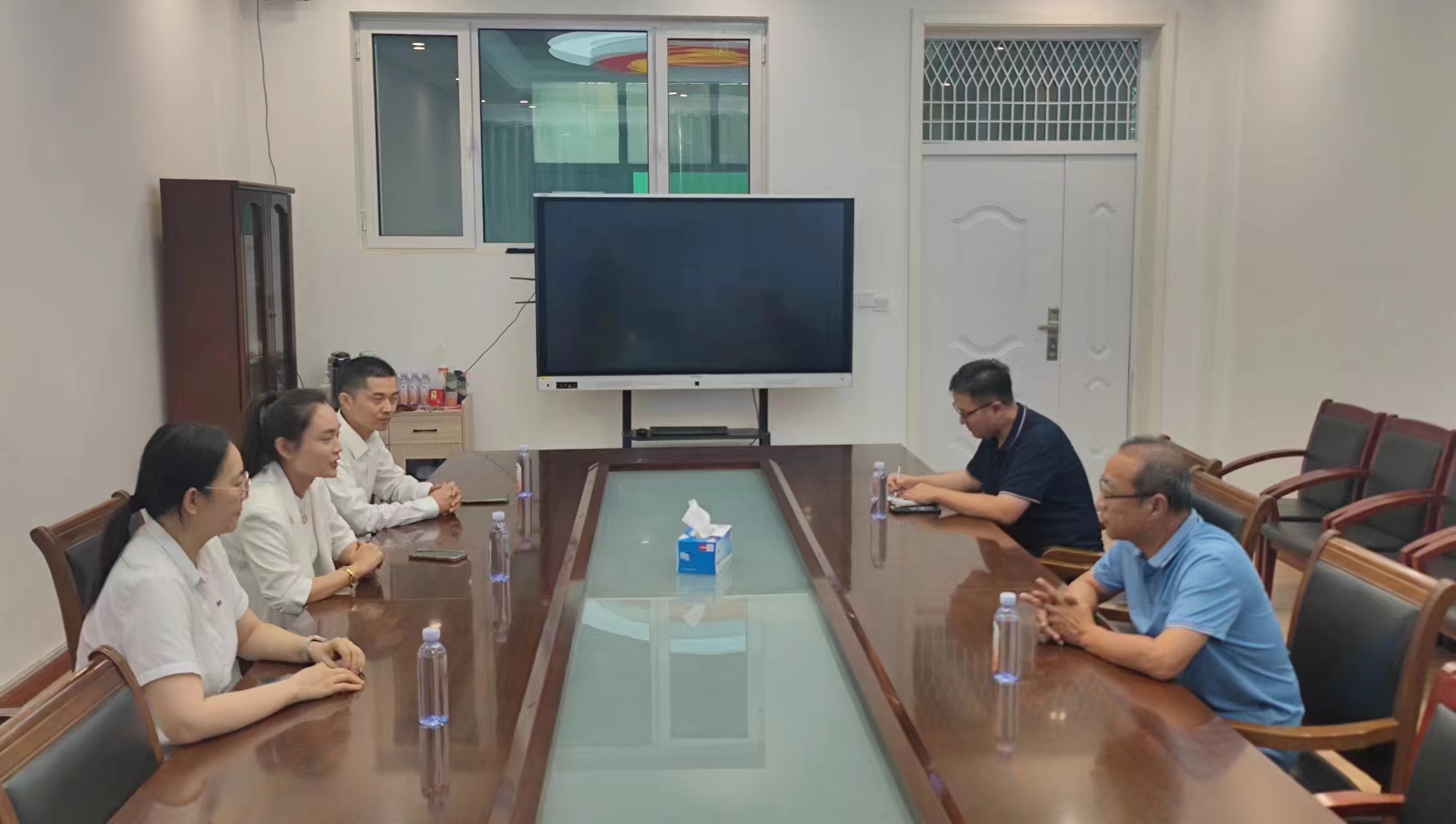 为深入贯彻落实“访企拓岗”促就业专项行动工作部署,进一步深化校企合作,拓宽毕业生就业渠道、丰富就业资源。5月30日,商学院(质量学院)与国泰君安于东校区1#410开展访企拓岗促就业座谈会。商学院(质量学院)党委副书记李树房、辅导员高鹏以及国泰君安首席理财投顾贾学杰、营业部总经理孟华、人力资源总监李晓莎参加本次座谈会。