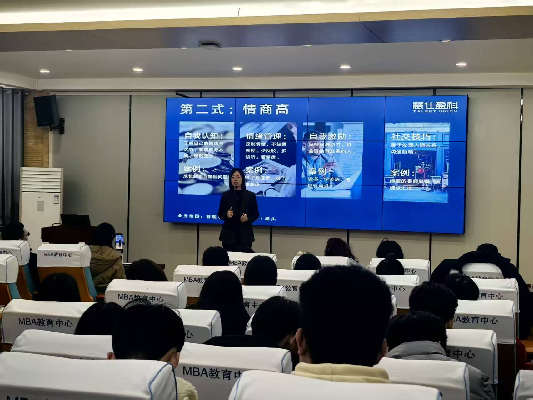纪淑丽围绕职业技巧、形象塑造、情商提升、合作能力等方面,借助真实案例分析和互动问答形式,清晰展示了求职准备中的重要环节以及常见的错误,助力学生明确就业方向、掌握实用技能的同时,依据当前就业市场特性,着重解析商科相关行业的发展趋势与人才需求状况,激励同学们尽早获取实习经验、积极拓宽职业视野,在强化专业学习的基础上重视综合能力的提升。