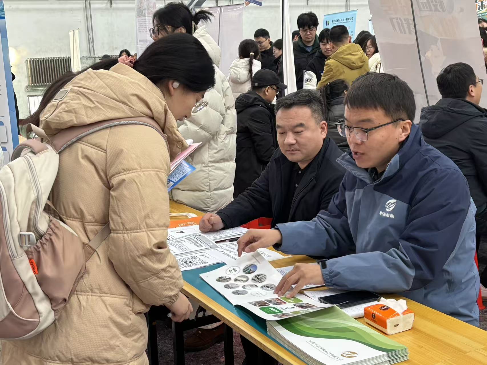 招聘会现场秩序井然、交流活跃。毕业生们结合个人专业特长与职业发展意向,主动与用人单位沟通,详细了解岗位职责、任职要求、薪酬待遇、培养体系及晋升通道等信息。各企业代表通过展板展示、宣传册发放、面对面介绍等形式,积极推介企业发展历程、文化理念、战略规划与行业前景,全方位呈现单位实力与人才需求。招聘会现场,招聘人员耐心解答了毕业生在职业选择、就业政策、技能准备等方面遇到的各类问题,并提供了针对性建议与指导,助力毕业生明晰求职定位,促进人岗高效对接。