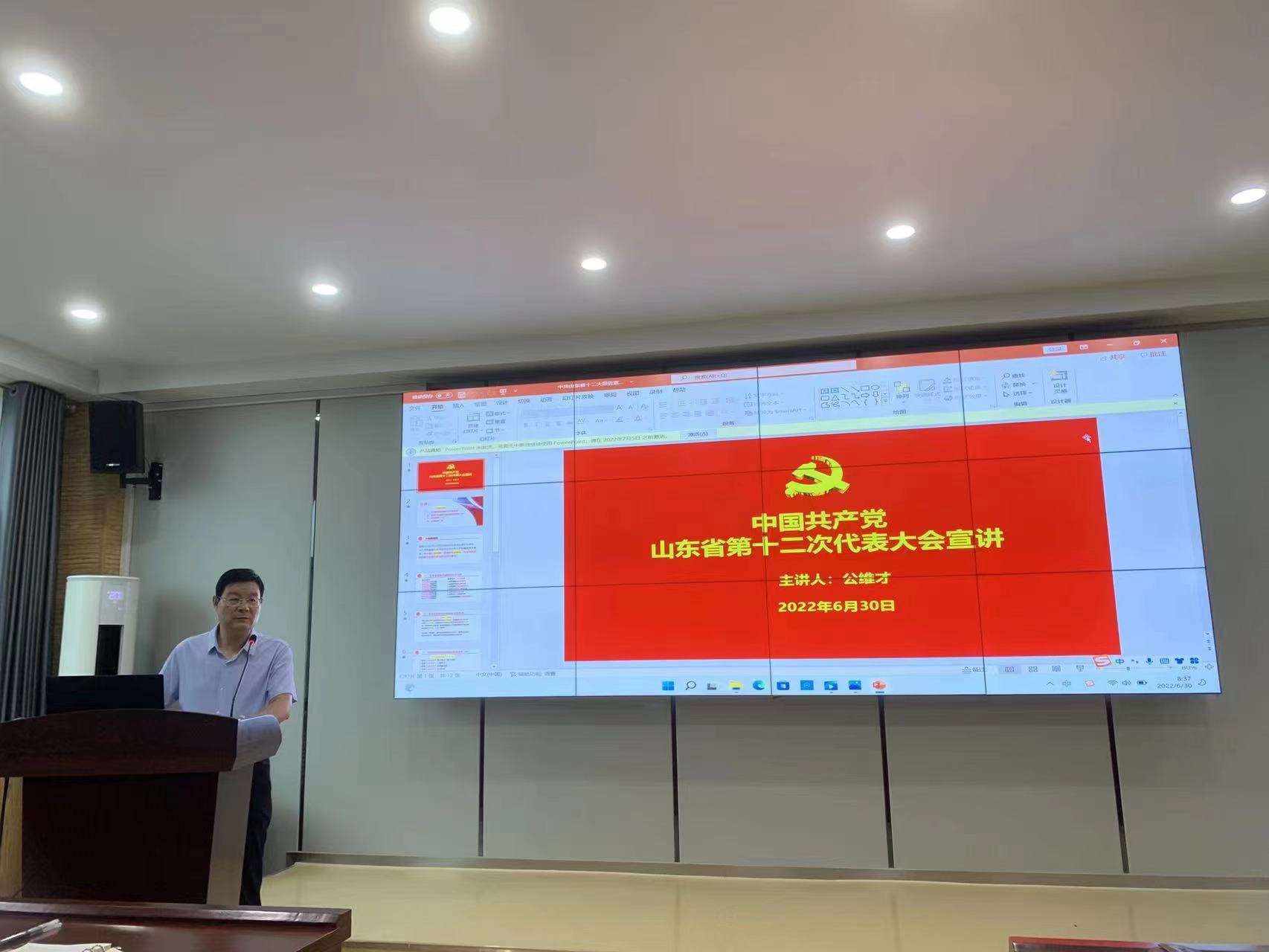 公书记强调,中国共产党山东省第十二次代表大会是在全国喜迎党的二十大、向着第二个百年奋斗目标迈进的关键时刻,山东省召开的一次十分重要的会议。他要求全体教职工要通过多形式、多层次、多渠道、全方位的学习,全面提升贯彻落实会议精神的能力,真正让会议精神在学院各项工作中落地生根;党员教师要在学习和实践会议精神中发挥模范作用,继续勇担使命、开拓进取,为学院发展贡献自己的力量,以优异成绩迎接党的二十大胜利召开。(审核:公维才)