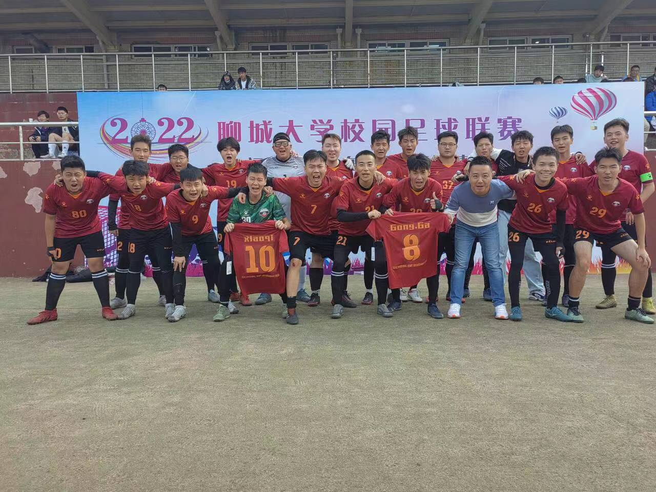 绿茵点亮梦想,激情挥洒青春。为丰富学生课余生活,促进我校各院互动交流,10月29日,商学院(质量学院)男子足球队于东校区国防生训练场参加了英国365公司第八届校园足球联赛,本场比赛由我院男子足球队对战美术与设计学院。