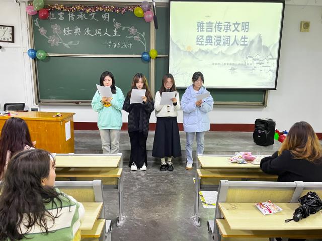 为帮助同学们感受中国经典的魅力,激发对经典文化的兴趣,更加深刻地感悟中华经典,增强文化自觉与文化自信。11月12日,商学院(质量学院)于东校区1#302举办“雅言传承文明 经典浸润人生”活动。