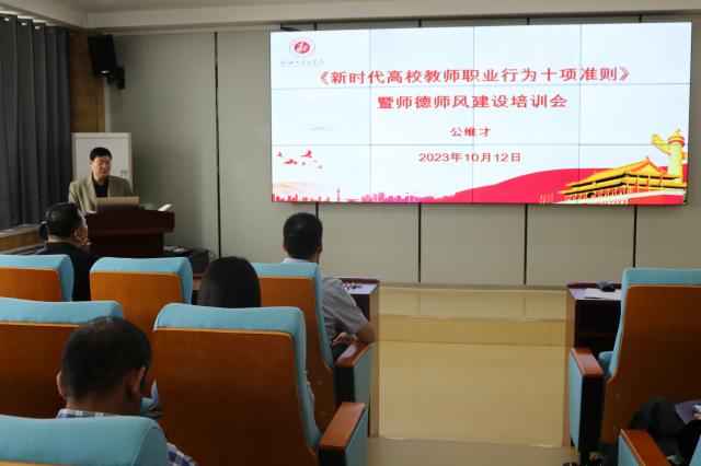 为严格落实新时代高校教师职业行为准则,强化日常教育督导,加大教师权益保护力度,切实抓好教师思想政治和师德师风建设工作,10月12日,商学院(质量学院)党委书记公维才向学院全体教职工讲解了《新时代高校教师十项职业行为准则》(以下简称《准则》),并就师德师风问题进行了强调。
