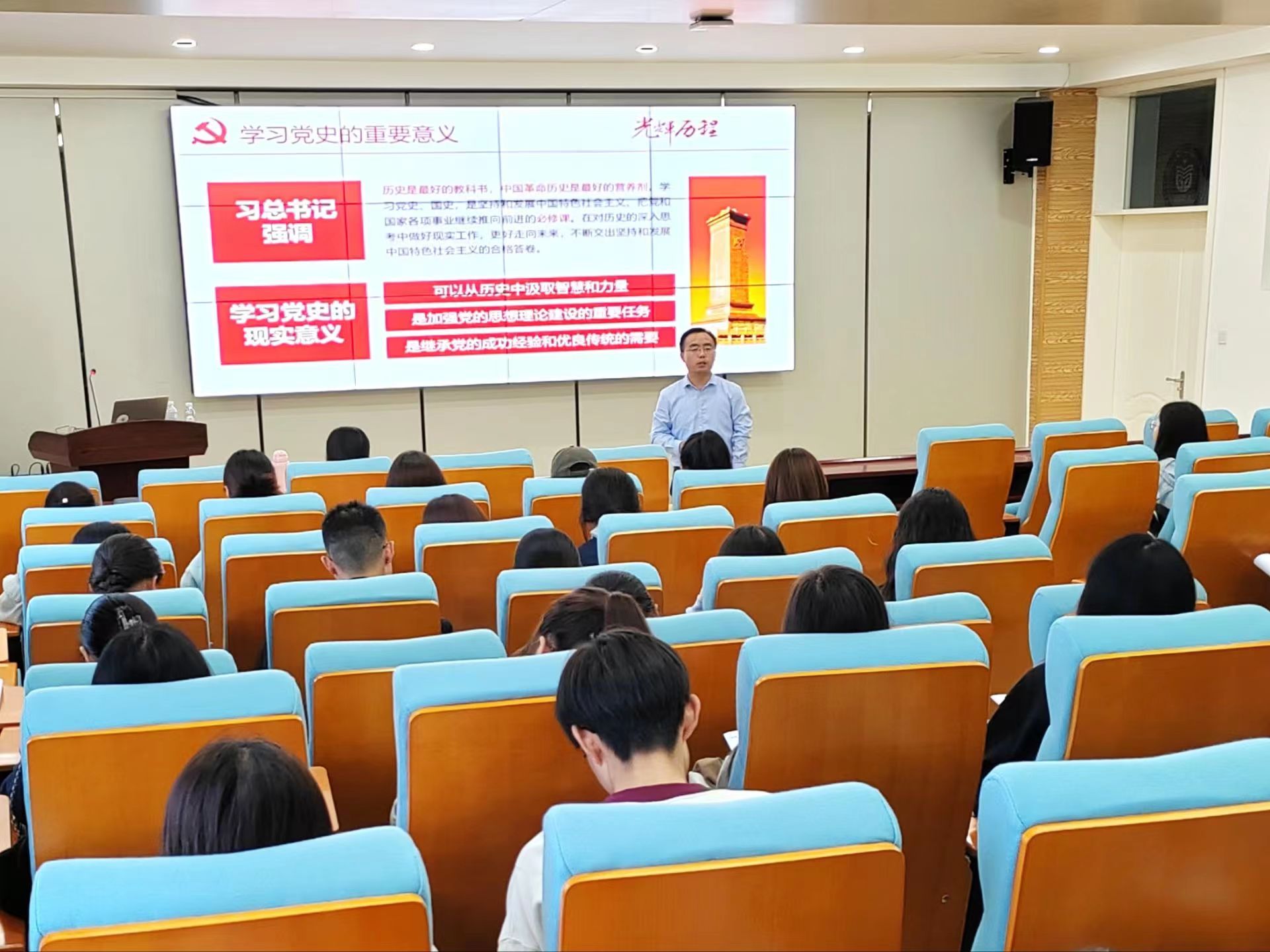 10月27日,商学院(质量学院)于东校区1#707举办入党积极分子专题党课培训会,校宣传部副部长岳增刚担任主讲人,学院党委组织员由玲主持此次培训会。