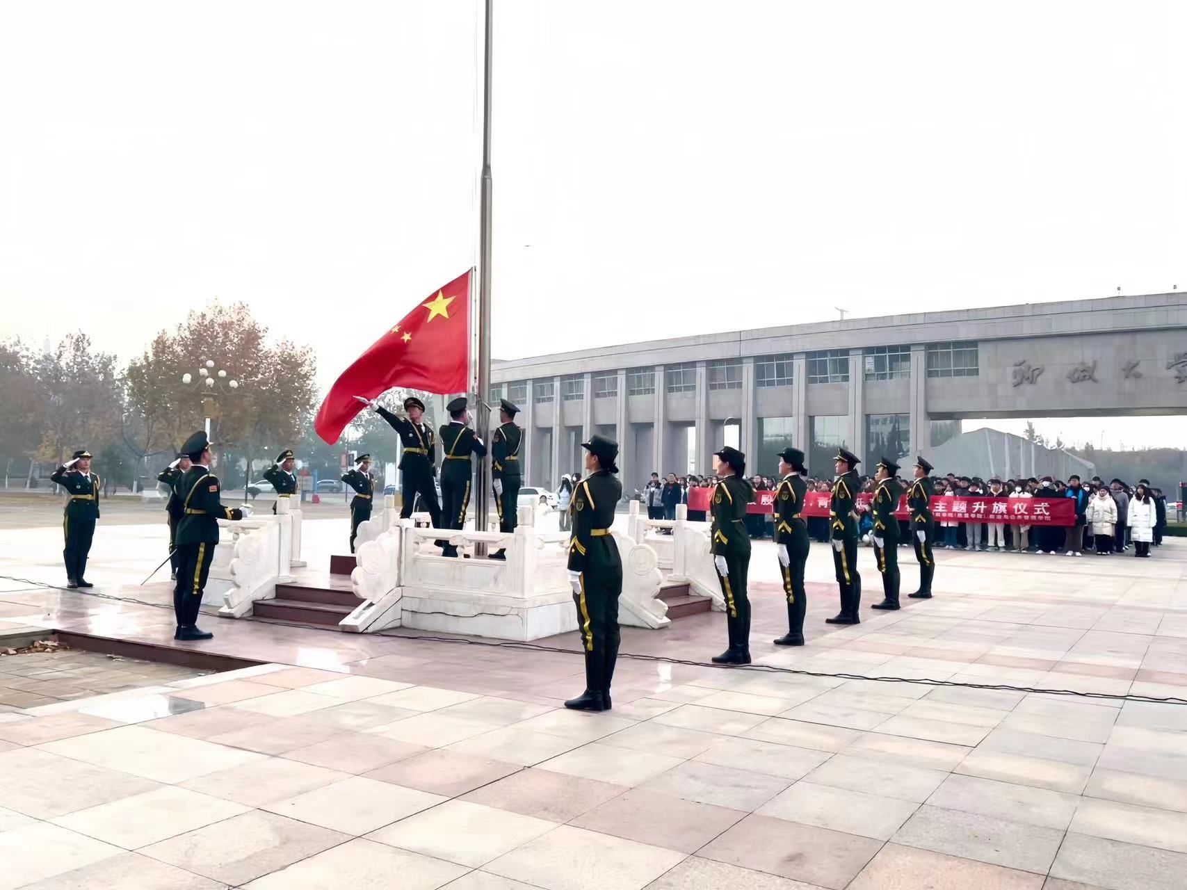 为加强青年学生的爱国主义教育,提高学生的凝聚力和向心力,鼓励青年学生心存鸿鹄之志,以实干笃定前行,11月27日,商学院(质量学院)、政治与公共管理学院于西校区十一广场共同承办了“时代殷殷嘱托,青年砥砺前行”主题升国旗仪式。政治与公共管理学院党委副书记乔华军,团委书记于进,商学院团委书记刘玉华,以及两个学院全体辅导员和学生代表共约400人参加活动。