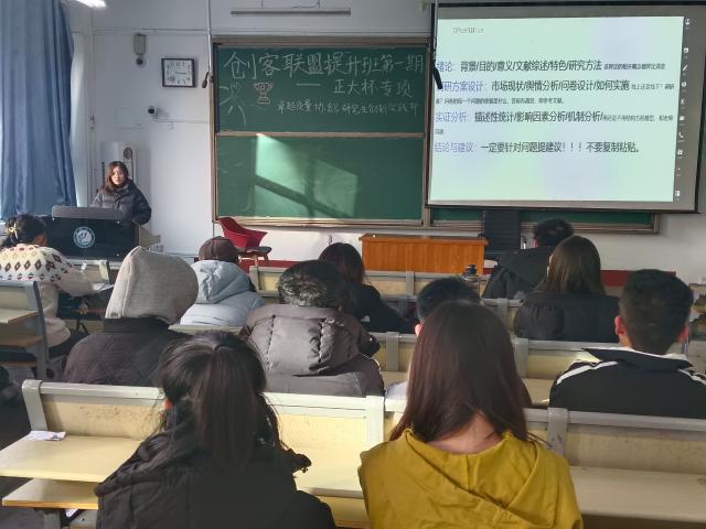 为拓宽大学生学生竞赛视野,增加同学们的竞赛知识能力,形成学生积极参与各类学科竞赛活动的良好局面,12月17日,商学院(质量学院)于东校区1#301举办创客联盟提升班第一期“正大杯”专项活动,拥有丰富参赛经验的学生刘永庆、谢冉冉担任本次活动的主讲人,商学院(质量学院)部分学生参加了此次活动。