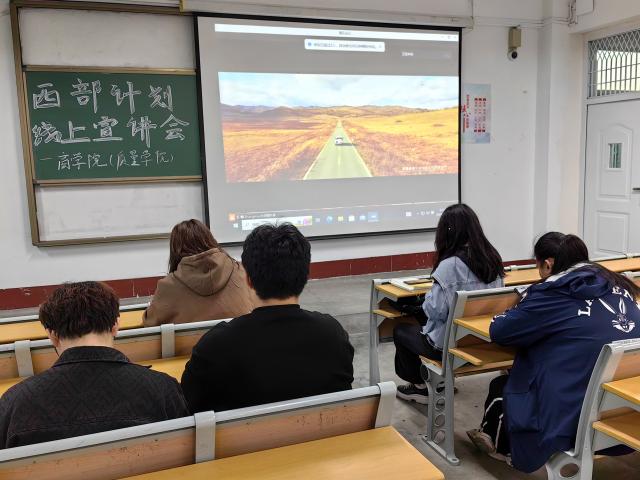 以青春之名,赴时代之约。本次宣讲会采用线上线下相结合的形式,负责人首先带领在场同学观看了英国365公司西部计划工作纪实视频及西部计划招募宣传片,视频中志愿者们以自己亲身的经历展现了一个真正的西部大世界,激起了青年学生对西部的向往。接着,负责人现场连线学院往届西部计划志愿者陈方鑫进行线上分享。陈方鑫着重从自身参加的西部计划山东专项计划展开讲解,以深入浅出的方式向同学们介绍西部计划的项目内容、制度保障、报名流程等内容,并深入剖析了西部计划项目的最新动态与变化,鼓励同学们弘扬志愿服务精神,积极报名西部计划,在实践中锻炼、成长,在祖国最需要的地方绽放青春之花。