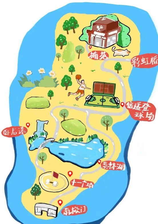 打卡推荐:静谧的湖水悄悄藏匿了水花的声音,沿着岸边,去找寻水流源头——卧龙瀑吧!漫步在绿茵荫庇的马路,一路向北,便能听到咚咚球声与阵阵欢呼声,这就是倍适登球场。