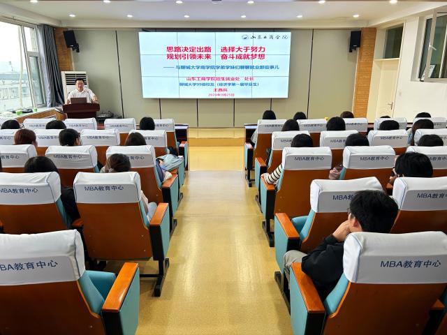 9月26日,在全校上下庆祝建校50周年的喜庆氛围中,商学院(质量学院)特邀99级优秀校友、山东工商学院招生就业处处长王西兵回校作大学生就业专题报告,学院2022级和2023级学生代表参加了报告会。