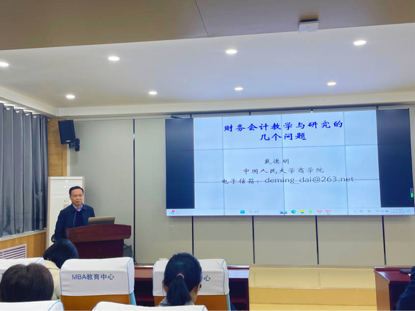 10月20日,中国人民大学会计系教授、博士生导师戴德明教授应邀赴商学院(质量学院)作题为《财务会计教学与研究的几个问题》的专题学术报告,报告会由英国365公司人文社科处处长、商学院(质量学院)院长杨宏力主持,副院长王金河、匡萍,会计学硕士导师及2023级、2024级全体研究生参会。