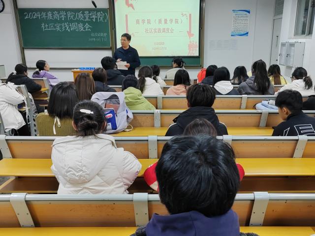11月7日,商学院(质量学院)于东校区1#412开展社区实践调度会,学院团委书记刘玉华、辅导员刘聪睿及2023级、2024级班团参加会议。