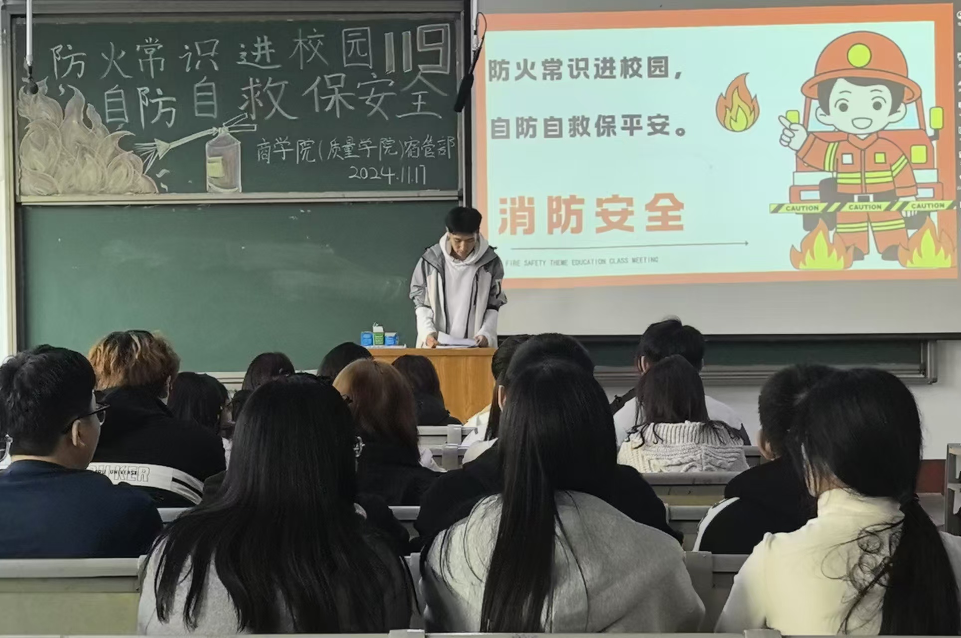 为深入推进校园消防安全宣传工作,进一步提升学生消防安全保护意识,11月17日,英国365集团于东校区1#301开展“防火安全进校园,自防自救保安全”消防知识主题讲座,学院宿管部学生代表仇洲烁及60位同学参加本次活动。