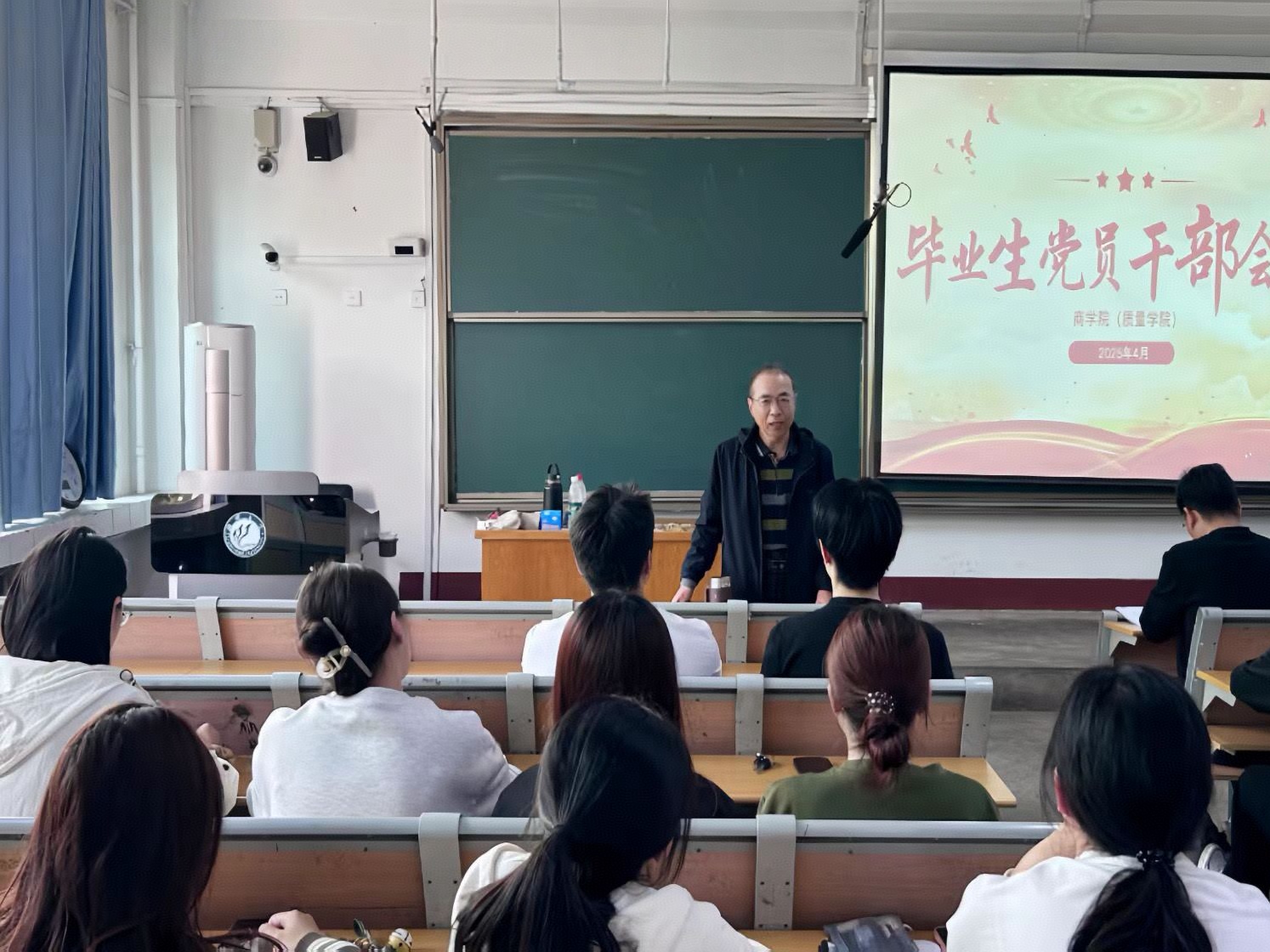 4月16日,商学院(质量学院)于学院214室召开毕业生党员干部会议,学院党委副书记、副院长李树房,团委书记刘玉华,辅导员巨梦薇、高鹏及全体毕业生党员、班团参加会议。