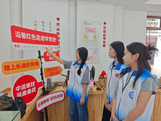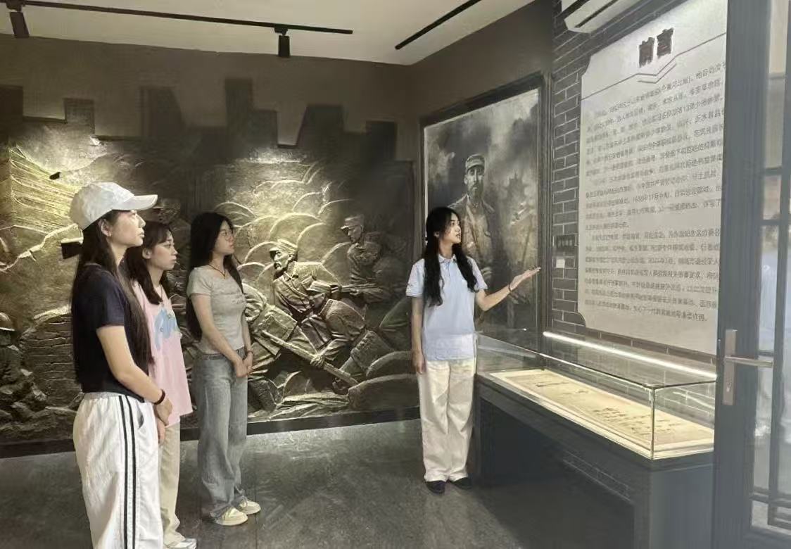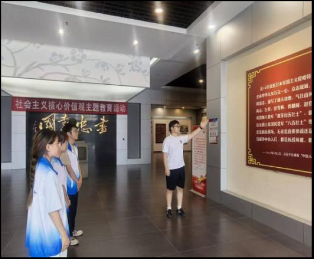 7月19日,实践队员赴日照东港区秦楼街道东夷小镇的市抗日战争纪念馆研学。队员们聆听讲解,深切感悟革命先烈捍卫国家主权、民族尊严浴血奋战的壮举,以及抗战中凝聚的爱国精神与当代西部计划志愿者奉献精神一脉相承的伟大内涵,进一步坚定了自身以实际行动诠释家国热爱与担当,及传承弘扬这种精神的决心。