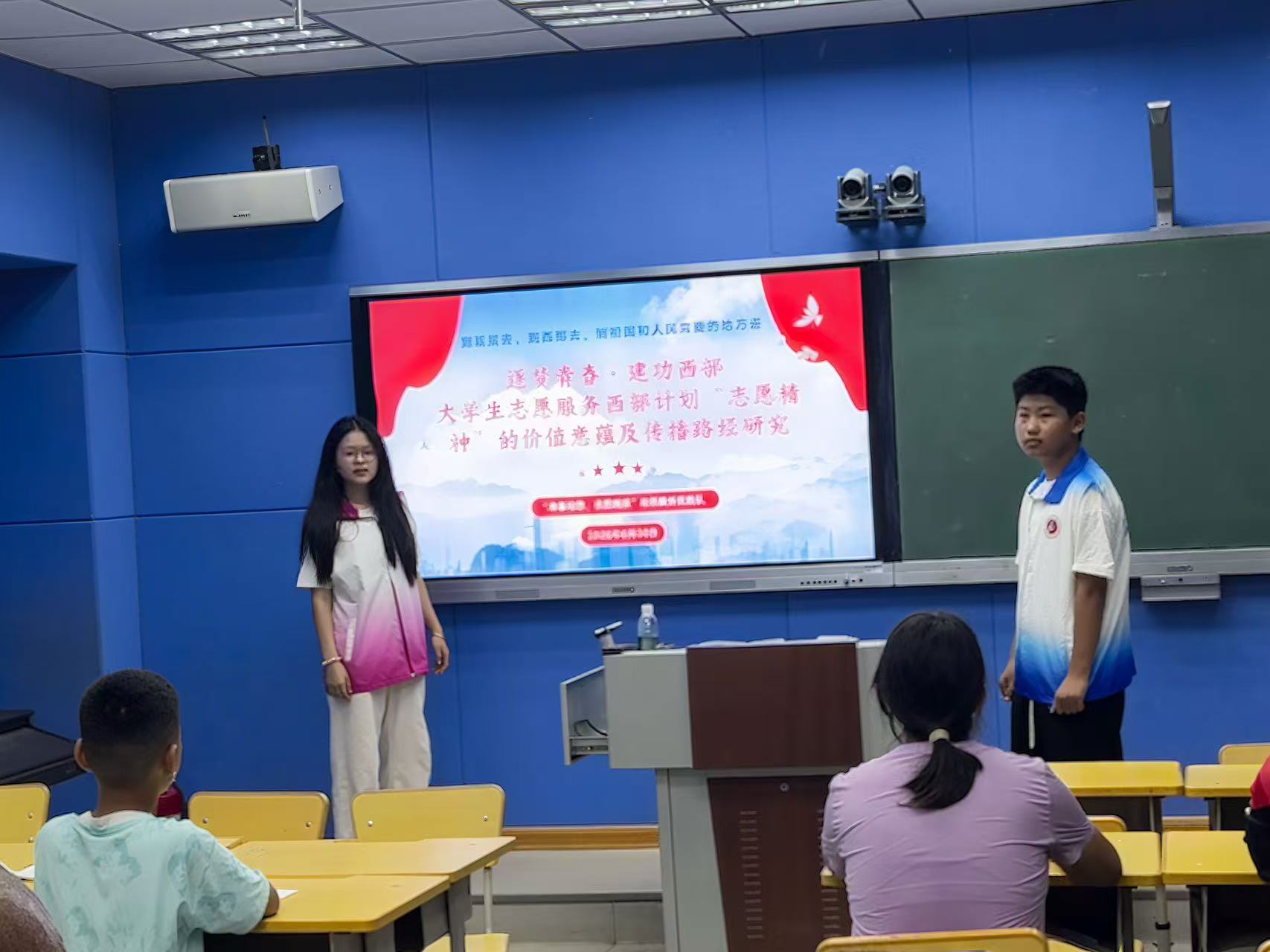 7月2日,实践队员在临沂第二十中学开展了主题班会、志愿服务及文化交流活动,将志愿精神传递给更多青少年。主题班会上,队员们分享了西部计划志愿者在艰苦环境中坚守奉献的故事,激励学生树立正确价值观;交流活动中,实践队员与学校教师探讨如何将志愿精神融入日常教学,培养学生的社会责任感与奉献精神。与会中学生纷纷表示,志愿精神能跨越地域、年龄与职业,无论身处西部偏远山区,还是家乡校园,只要心中有爱、有责任,每个人都能成为传承者与践行者。