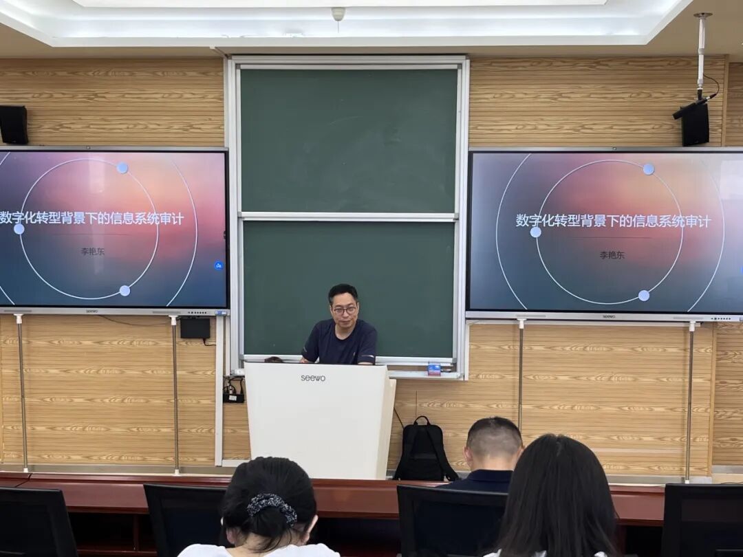 6月13日上午,北京中信银行审计部资深经理、中国财政科学研究院会计博士李艳东博士做客商学院(质量学院),作题为《数字化转型背景下的信息系统审计》的专题学术报告,报告会由商学院会计系系主任张延辉主持,商学院(质量学院)全体教师及会计专硕2024级全体研究生参会。
