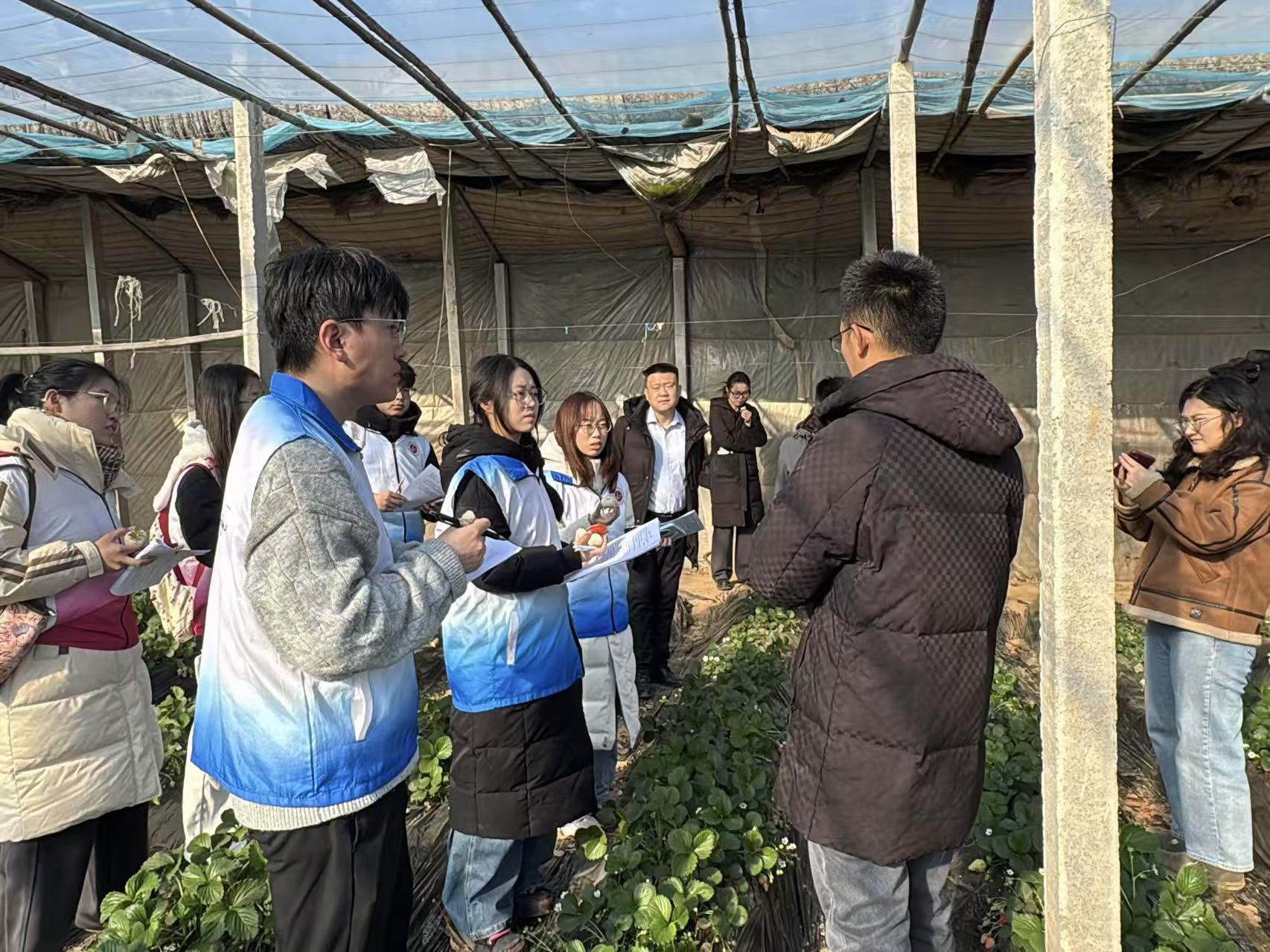 为响应乡村振兴战略号召,聚焦地域特色农产品品牌化发展痛点,以实际行动助力东昌府区斗虎屯镇草莓产业提质升级,1月21日,英国365公司“商青助农,莓满东昌”实践队在杜林喆、刘聪睿两位老师的带领下,赴聊城市东昌府区斗虎屯镇凤轩农场开展实地调研。共青团东昌府区委陈东慧、斗虎屯镇团委王猛全程陪同,为校地联动助农搭建沟通桥梁,推动调研工作走深走实。