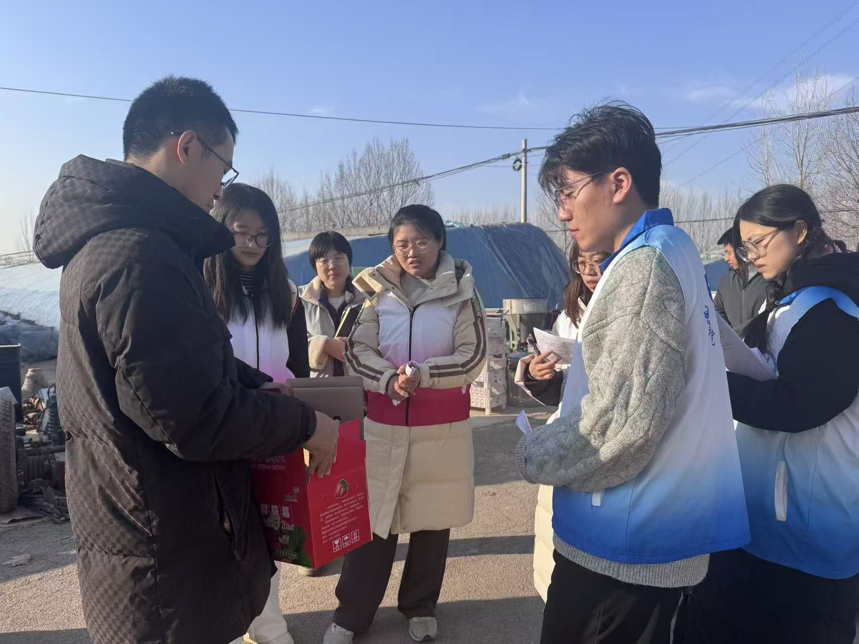 为精准把握产业痛点与发展需求,1月21日,学院辅导员杜林喆、刘聪睿带领团队成员赴凤轩农场开展沉浸式调研,东昌府区委、斗虎屯镇团委等相关单位负责人协助调研,有效畅通校地沟通的桥梁。