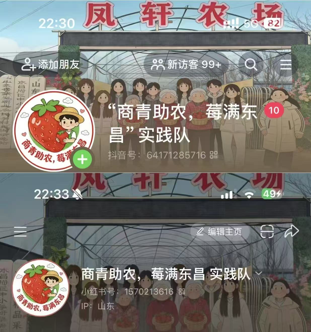 系列视频制作完成后,实践队锚定抖音、小红书两大核心平台,积极构建差异化传播矩阵,推动斗虎屯草莓实现线上破圈。凭借优质内容创作,实践队相关账号获得平台流量扶持,引发广泛关注。在抖音平台,“凤轩草莓采摘园”话题视频累计播放量达7.1万次,团队账号视频单条最高播放量突破1.5万次,视频带动账号新增粉丝达200余人,收获点赞超700个;在小红书平台,实践队发布4篇图文种草笔记,浏览量达500余次,点赞和收藏量超50个。流量转化成效显著,咨询留言持续增加,显著带动凤轩农场销售额提升,并使客源辐射范围从聊城拓展至周边地市,更有体验过的网友自发发布反馈笔记,形成“官方推广+用户口碑”的良性传播生态,大幅提升品牌美誉度。
