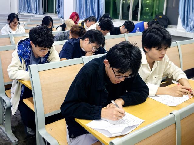 本次竞赛围绕经典典籍、诗词文赋展开,设置笔试与飞花令两大环节。笔试环节,参赛选手沉着冷静,依托扎实的知识储备认真作答,考题涵盖诗词格律、国学文学常识等内容,充分展现出同学们扎实的国学素养。飞花令环节将整场活动推向高潮,面对屏幕上的主题字,选手们反应敏捷、对答如流,一句句经典诗词脱口而出,尽显深厚文学底蕴,赢得现场阵阵喝彩。经过激烈角逐,闫玉晴斩获一等奖;刘晓倩、陈家旭、蔡雨欣荣获二等奖;许昊翔、孙月珩、陈永康、李合帅、任天宇荣获三等奖。